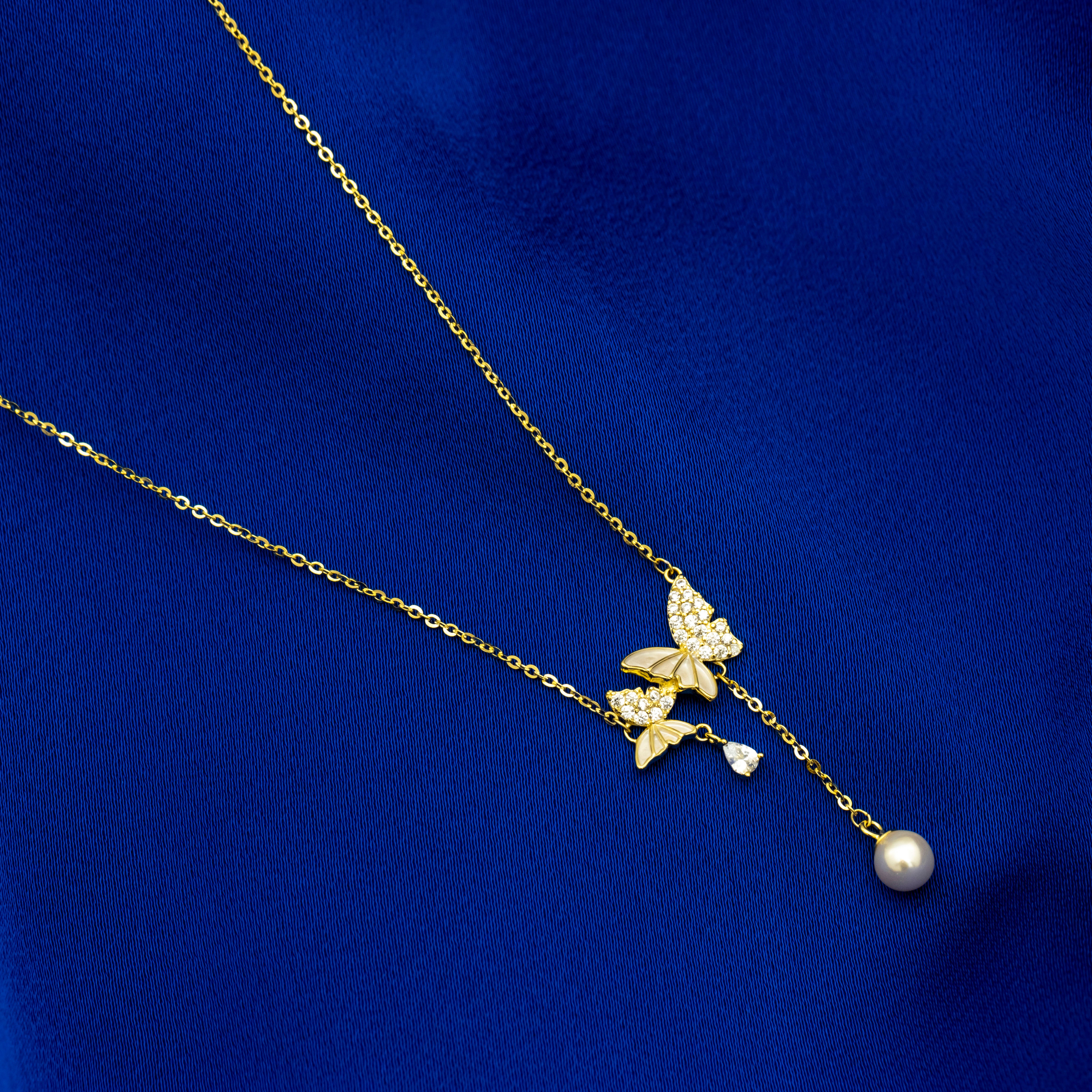 This exquisite gold necklace features a beautifully crafted butterfly pendant, symbolizing transformation and grace. Made from high-quality 925 silver, the necklace is not only durable but also hypoallergenic, making it suitable for all skin types. The butterfly pendant is intricately designed, showcasing delicate wings that shimmer with a radiant gold finish, adding a touch of elegance to any outfit. The chain is thoughtfully designed to complement the pendant, ensuring a comfortable fit around the neck while enhancing the overall aesthetic of the piece. This necklace is perfect for both casual and formal occasions, making it a versatile addition to any jewelry collection. Whether you are treating yourself or searching for a meaningful gift, this gold butterfly necklace is sure to leave a lasting impression.