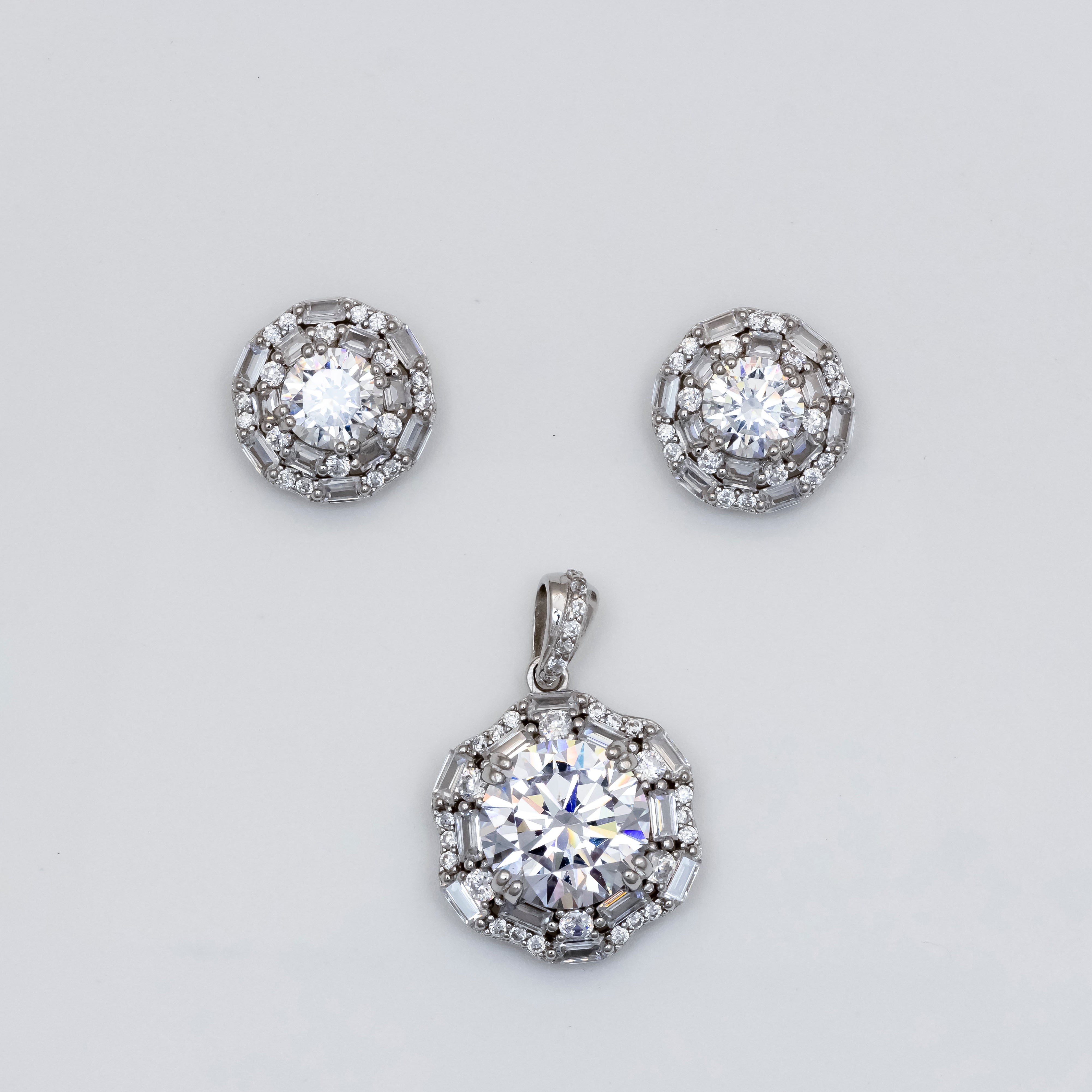 This exquisite diamond pendant and earrings set is crafted from high-quality 925 silver, ensuring both durability and elegance. The set features a stunning pendant and matching earrings, designed to enhance any outfit with a touch of sophistication. Please note that the chain is not included, allowing you to personalize your look with your preferred style. Perfect for special occasions or as a thoughtful gift, this set is a timeless addition to any jewelry collection.
