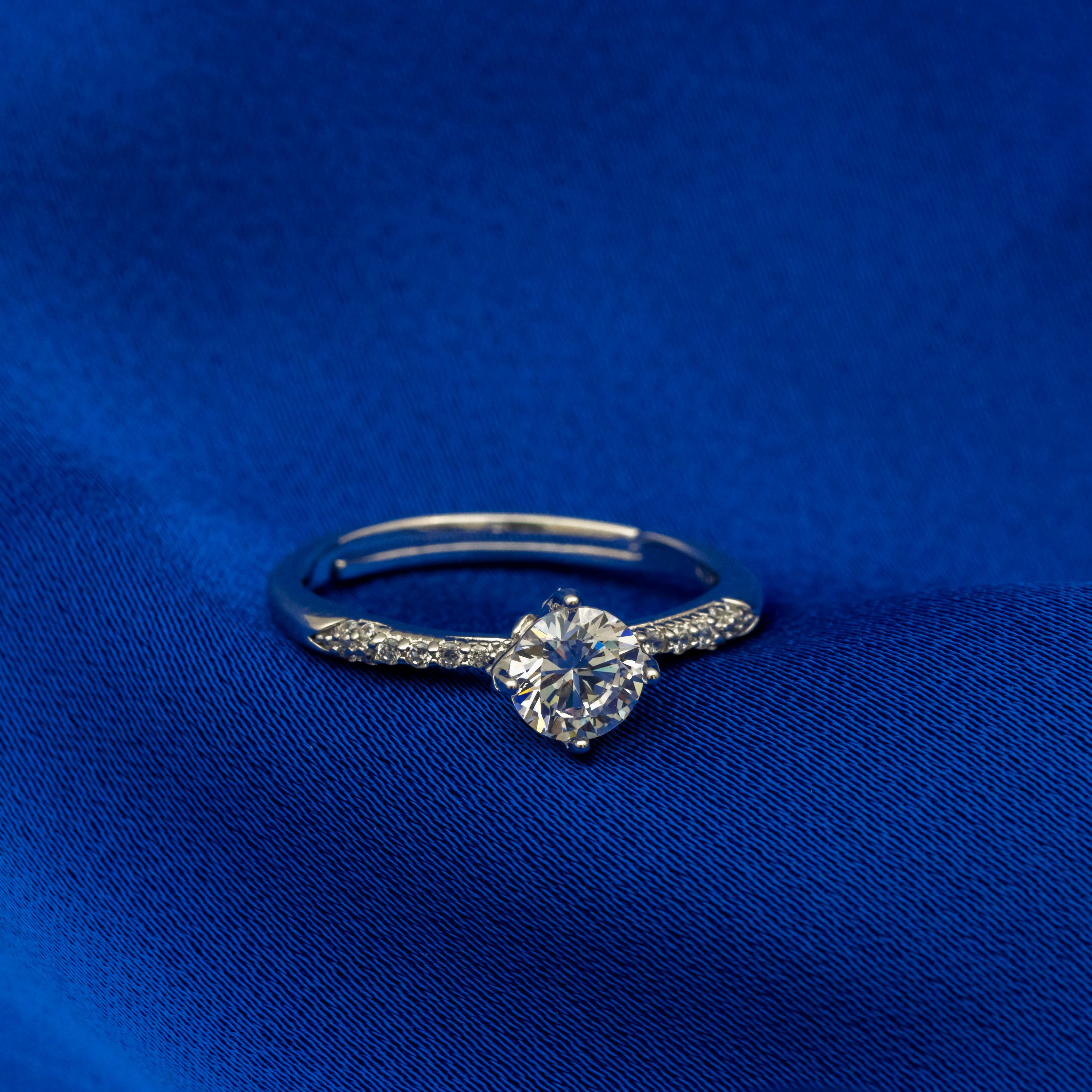 This exquisite diamond engagement ring features a stunning solitaire design, elegantly set on a lustrous white gold band. Crafted from high-quality 925 silver, the ring is adorned with sparkling zircon stones that enhance its brilliance and allure. Perfect for symbolizing love and commitment, this timeless piece is an ideal choice for that special moment.