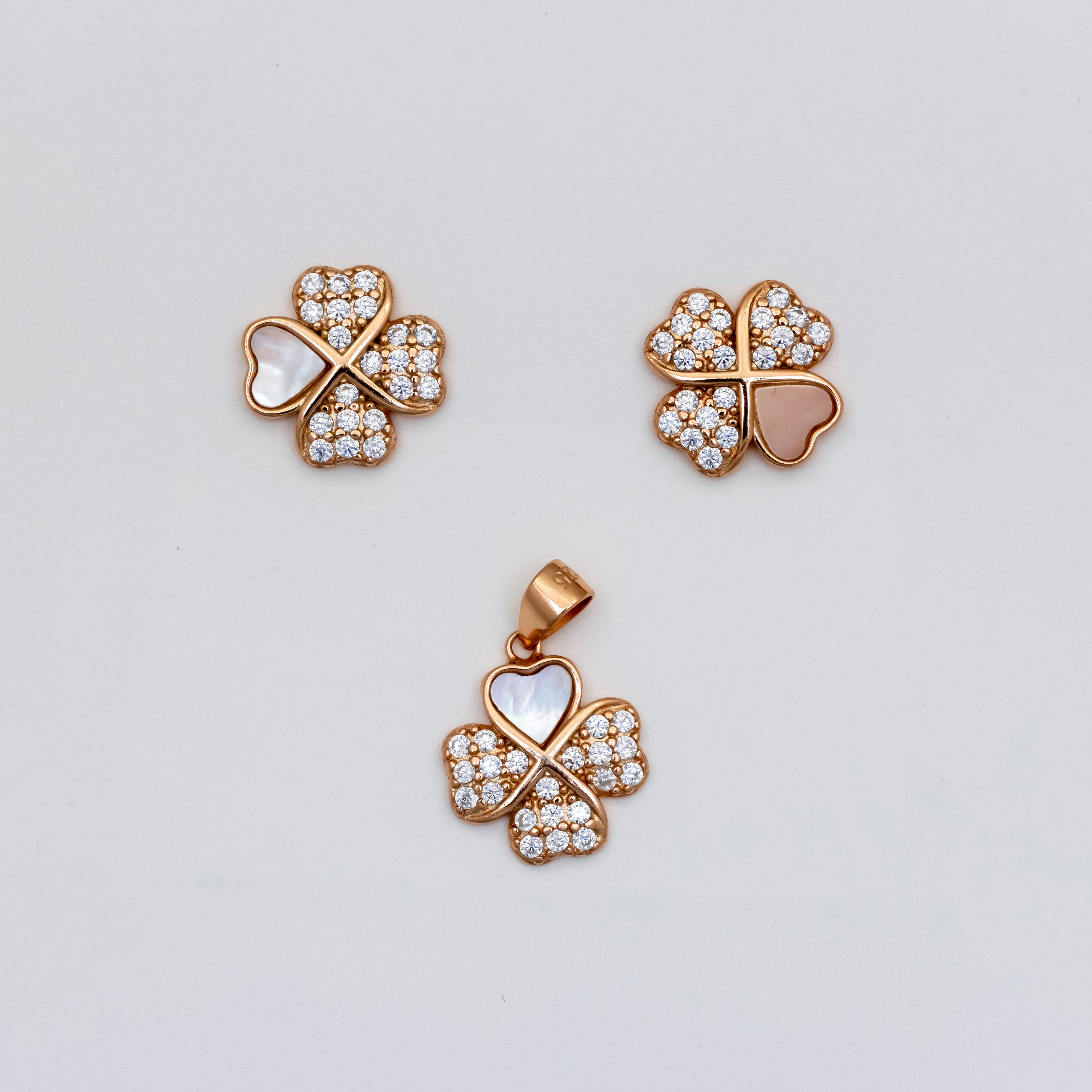 This exquisite three-piece set features a stunning four-leaf pendant and matching earrings, crafted from high-quality 925 silver. The elegant design symbolizes good luck and prosperity, making it a perfect gift for any occasion. Please note that the set includes only the pendant and earrings; a chain is not included.