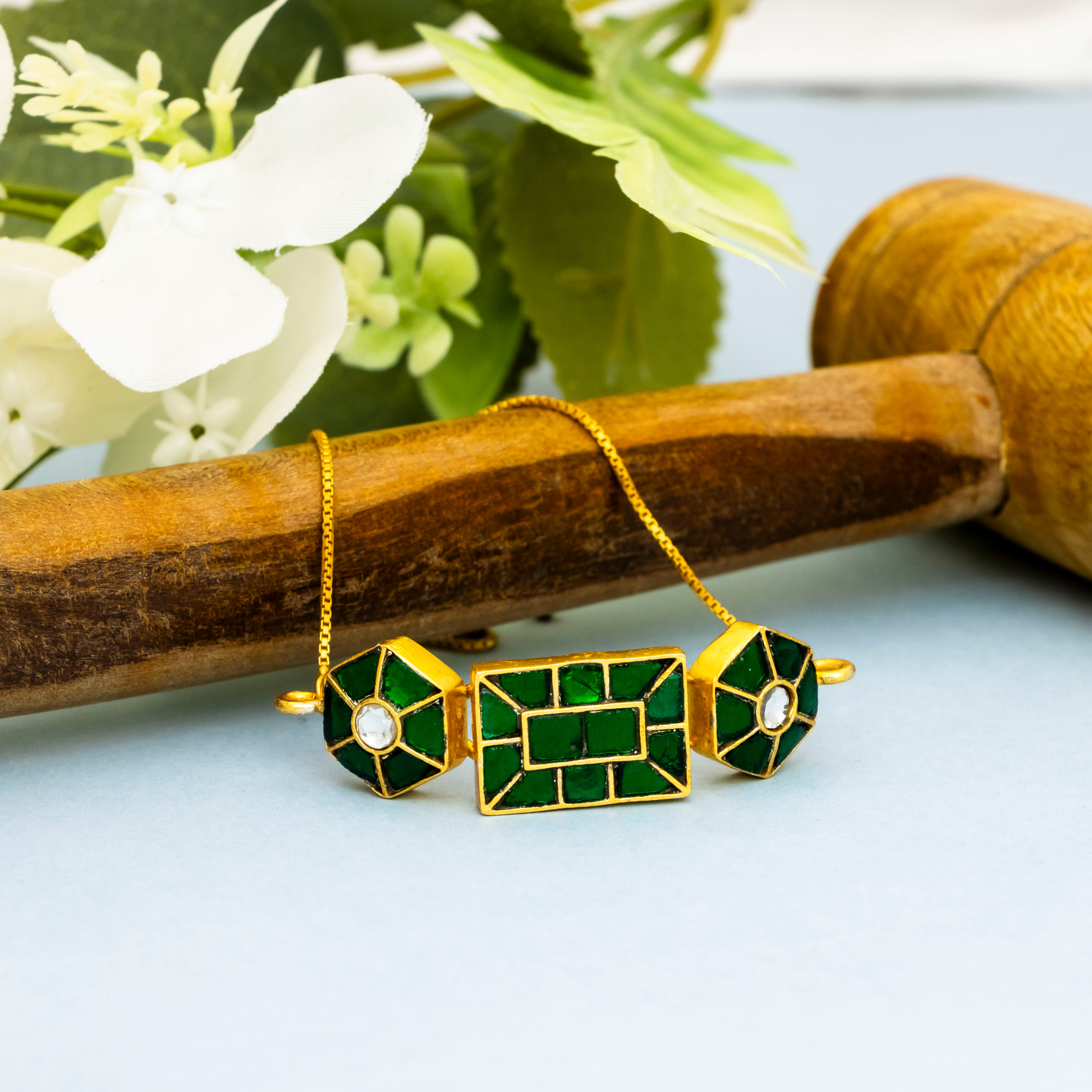 Green Kundan Jadau Gold Plated Bracelet