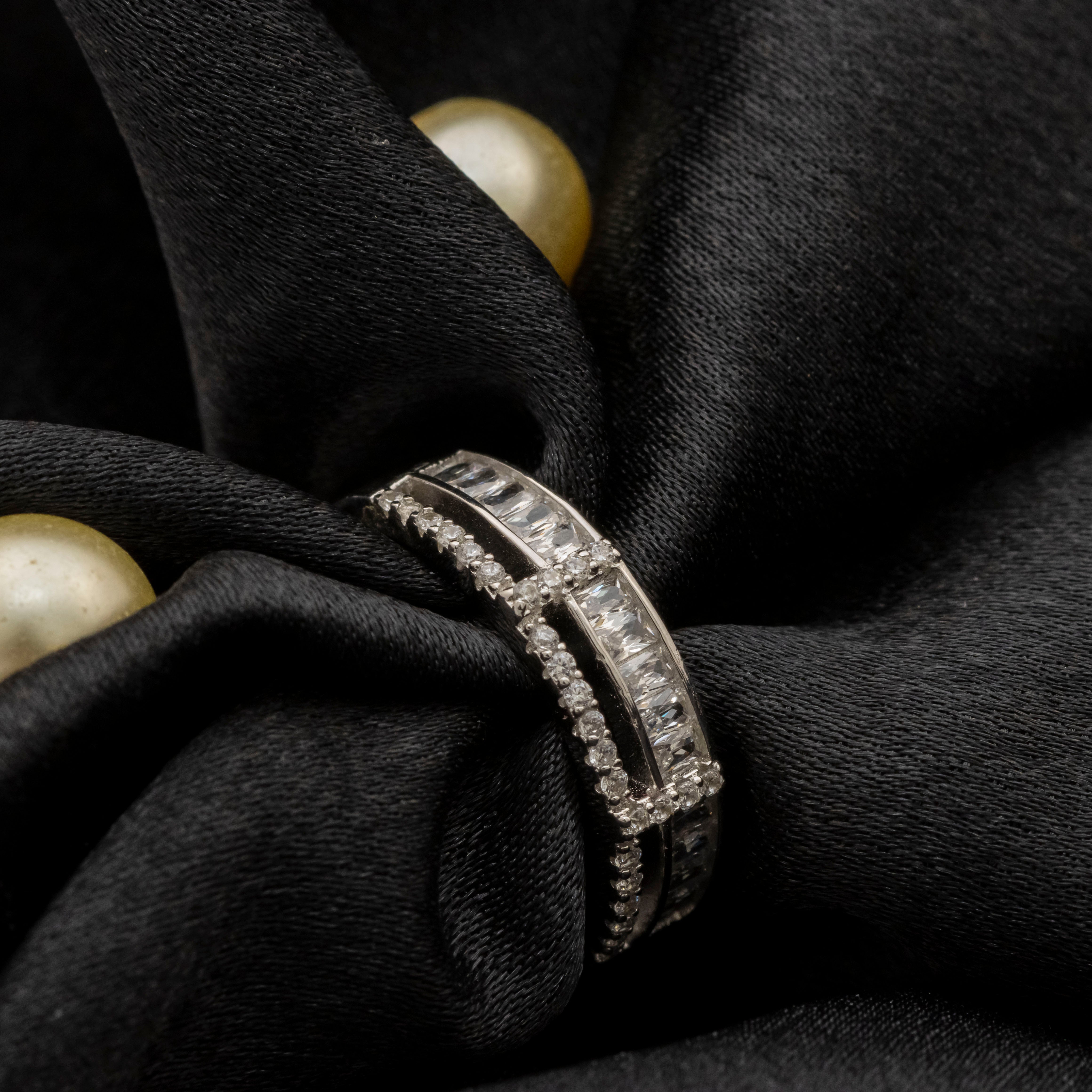 Introducing an exquisite white gold band adorned with sparkling diamonds, a perfect embodiment of elegance and sophistication. Crafted from high-quality 925 silver, this ring features a lustrous white gold finish that enhances its luxurious appeal. The band is meticulously designed to showcase a series of brilliant diamonds, each carefully set to maximize their brilliance and fire, creating a stunning visual effect that captures the light beautifully. This timeless piece is ideal for special occasions or as a statement accessory for everyday wear, making it a versatile addition to any jewelry collection. Whether as a gift for a loved one or a personal indulgence, this white gold and diamond band is sure to leave a lasting impression.