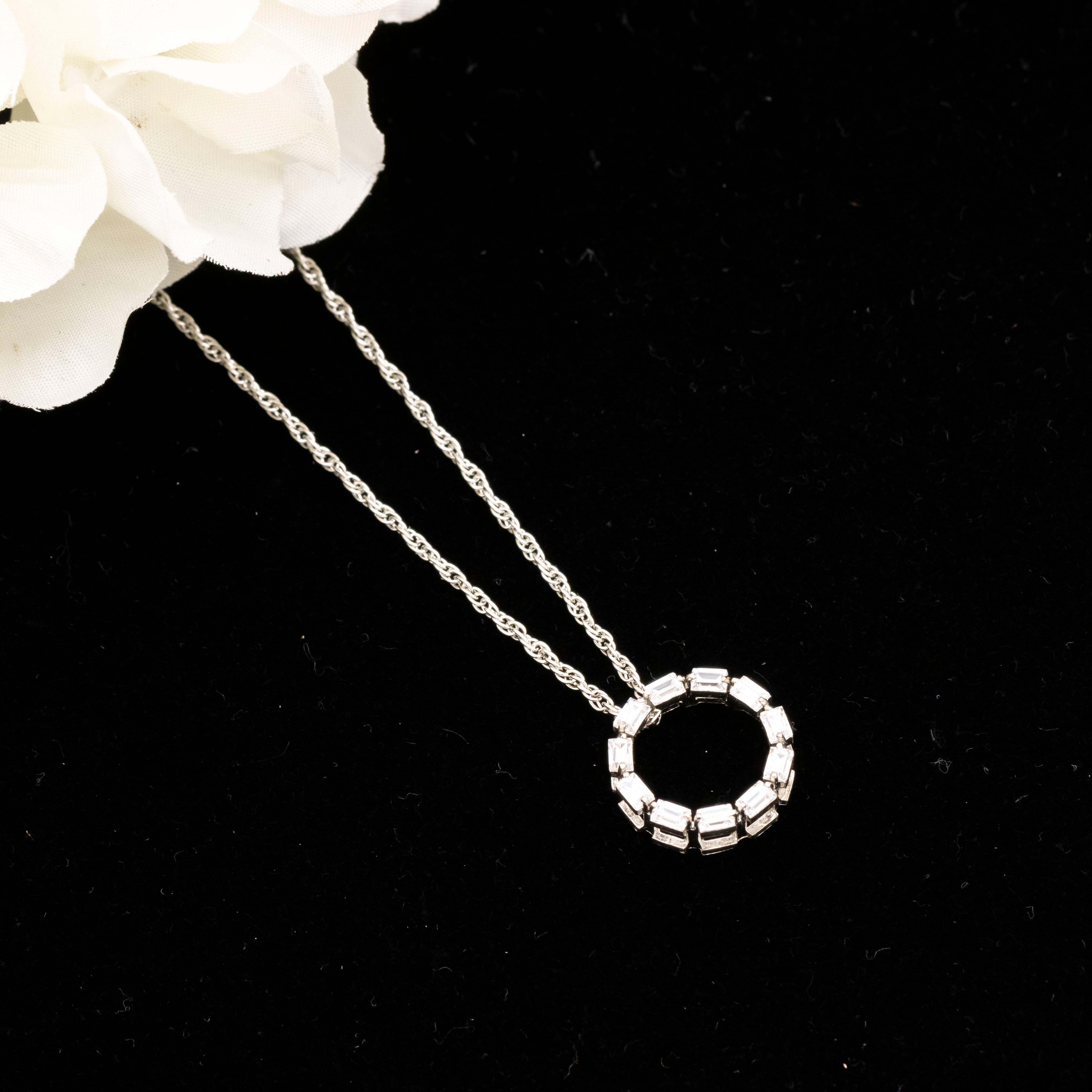 Elevate your jewelry collection with this exquisite diamond circle pendant, elegantly suspended from a finely crafted 925 silver necklace. The pendant features a stunning arrangement of brilliant-cut diamonds, meticulously set to create a captivating circle that symbolizes eternity and timeless beauty. The lustrous silver chain complements the pendant perfectly, providing a delicate yet durable foundation that enhances the overall aesthetic. Ideal for both everyday wear and special occasions, this necklace serves as a versatile accessory that adds a touch of sophistication to any outfit. Whether you are treating yourself or searching for the perfect gift, this diamond circle pendant necklace is sure to leave a lasting impression.