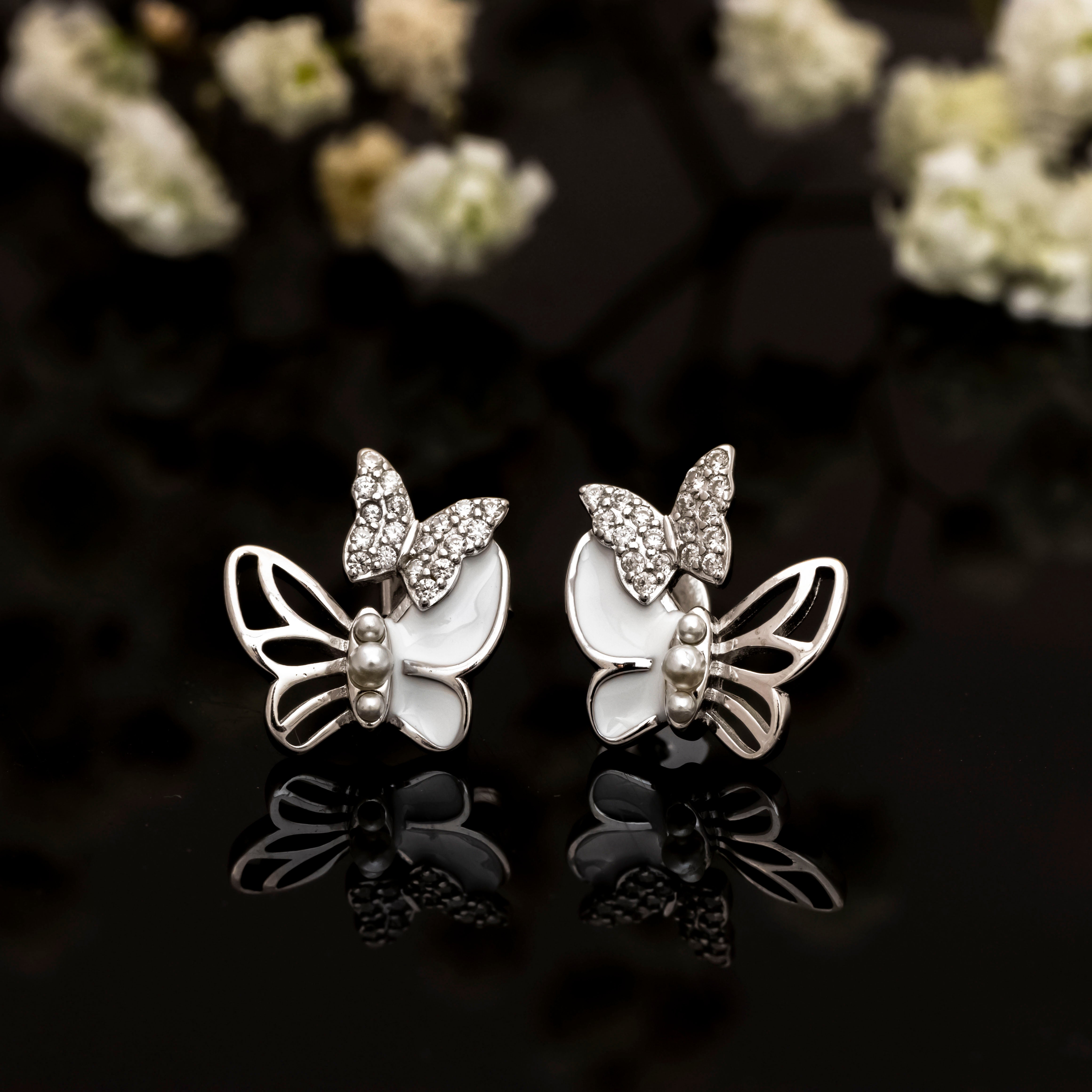 Indulge in the exquisite elegance of these butterfly-shaped earrings, meticulously crafted from premium 925 silver, which ensures both durability and a lustrous finish. Each earring is adorned with shimmering white zircon stones that capture and reflect light with every movement, creating a dazzling display reminiscent of a delicate dance. The intricate design of the butterflies symbolizes transformation and beauty, making these earrings not just an accessory, but a statement of grace and sophistication. Perfect for both casual outings and formal occasions, these earrings will elevate any ensemble, adding a touch of luxury and charm that is sure to turn heads and spark conversations. Embrace the allure of nature's artistry with this stunning pair, a timeless addition to any jewelry collection.