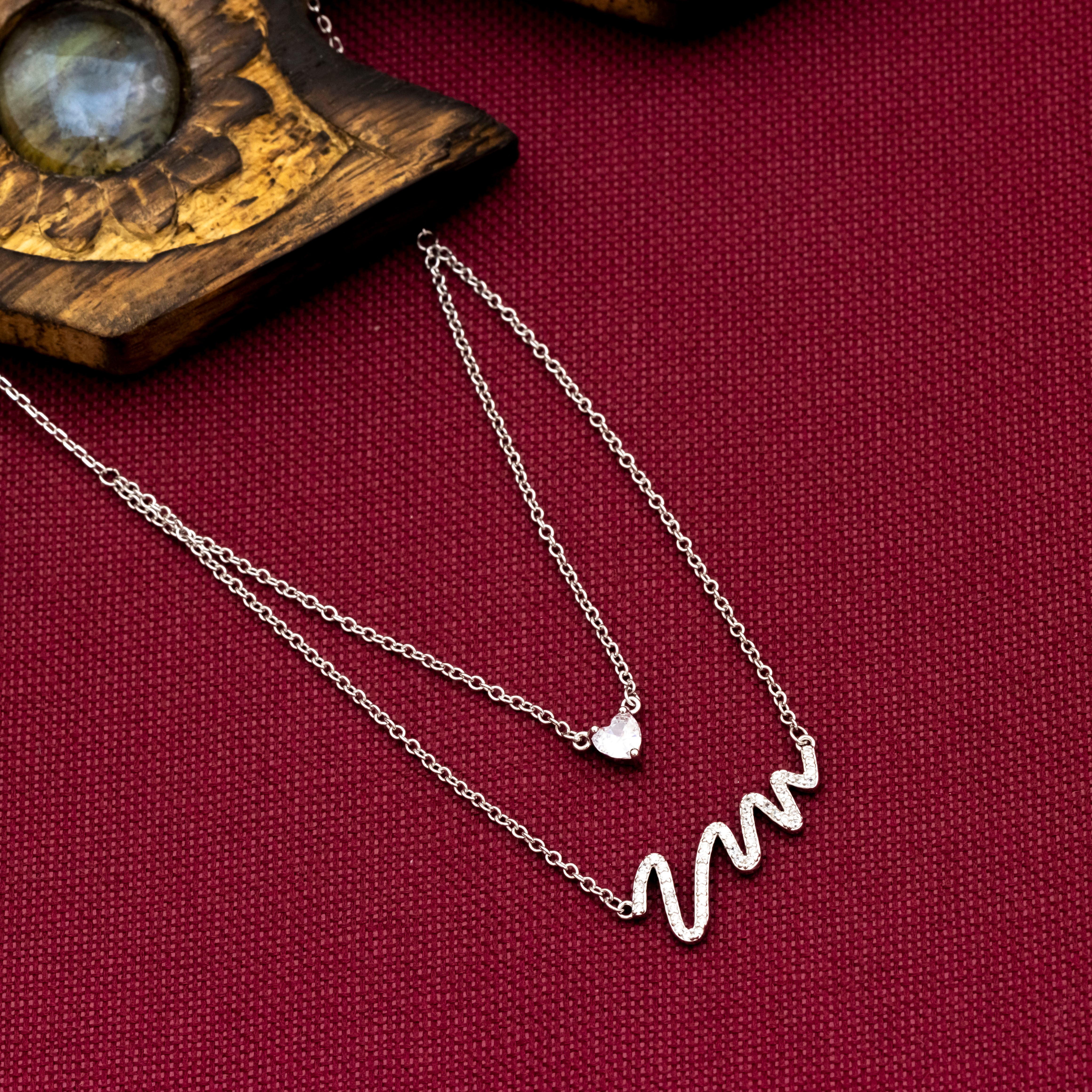 This exquisite necklace features a sophisticated design that elegantly combines two delicate chains, crafted from high-quality 925 silver, renowned for its durability and lustrous finish. The interplay of the two chains creates a layered effect that adds depth and dimension to the piece, making it a striking accessory for any occasion. At the center of this stunning necklace lies a brilliant diamond, expertly set to catch the light and enhance the overall allure of the design. The diamond not only serves as a focal point but also symbolizes timeless elegance and luxury, making this necklace a perfect gift for a loved one or a cherished addition to your own jewelry collection. Whether worn alone or layered with other pieces, this necklace is sure to elevate any outfit, from casual to formal, with its refined charm and understated glamour.