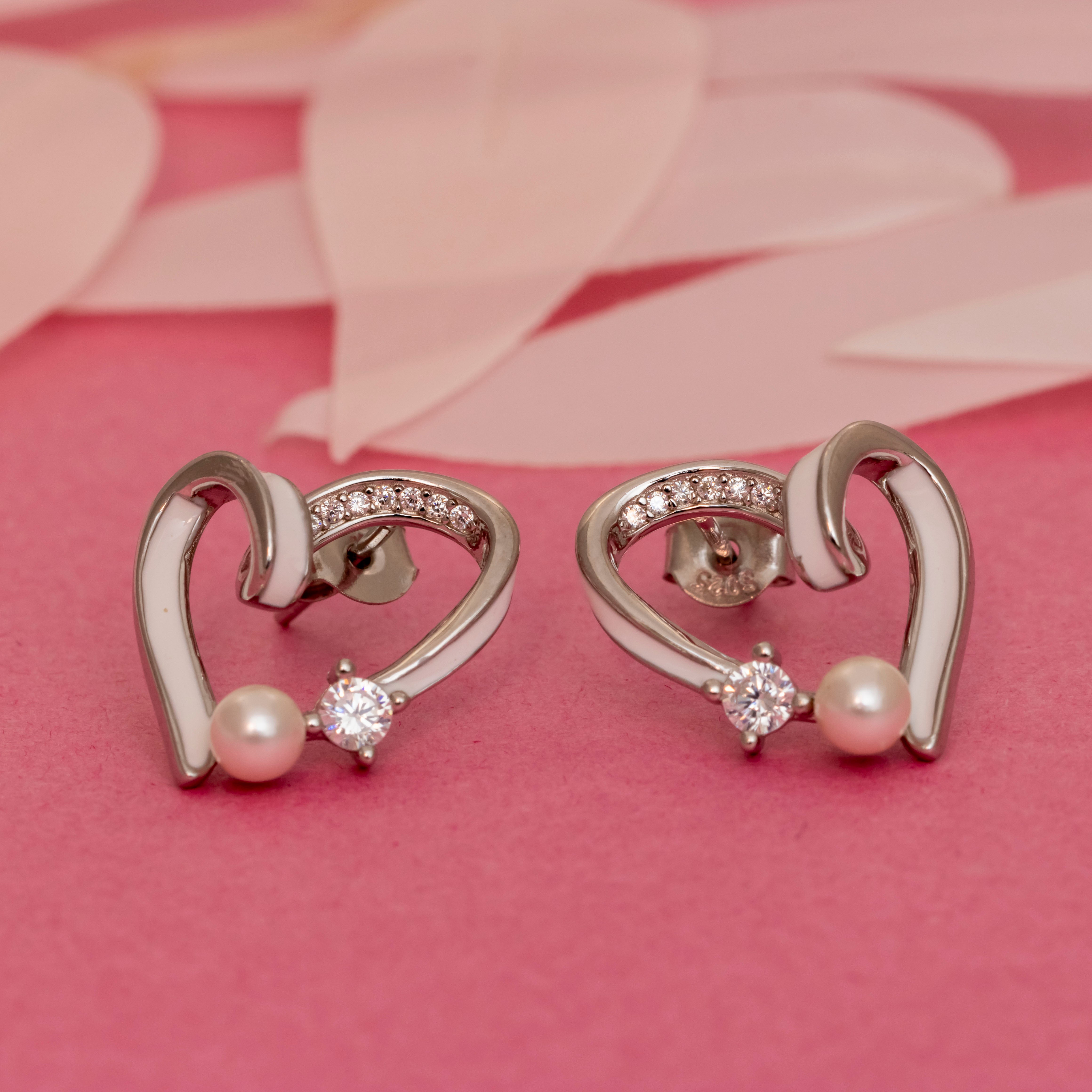 Elevate your jewelry collection with these exquisite heart-shaped earrings, meticulously crafted from high-quality 925 silver. Each earring features a stunning design that beautifully combines the elegance of lustrous pearls and the brilliance of sparkling diamonds, creating a captivating accessory that is perfect for any occasion. The heart shape symbolizes love and affection, making these earrings an ideal gift for a loved one or a cherished addition to your own collection. The combination of the soft sheen of the pearls and the dazzling clarity of the diamonds ensures that these earrings will catch the light and draw attention, making them a standout piece in any ensemble. Whether worn for a formal event or a casual outing, these earrings are sure to enhance your style with their timeless charm and sophistication.