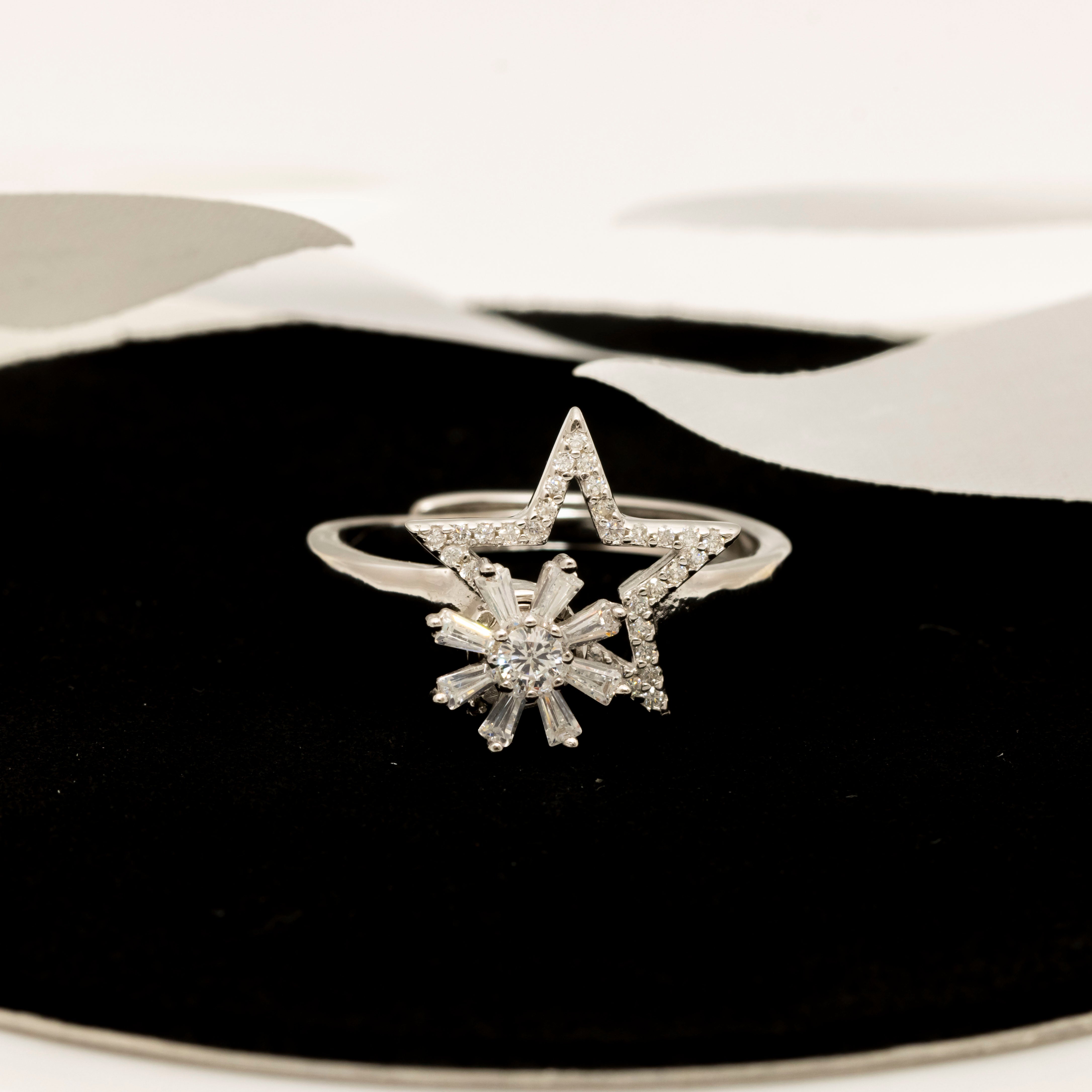Introducing an exquisite rose gold star and diamond ring, meticulously crafted to elevate any jewelry collection. This stunning piece features a delicate band made from high-quality 925 silver, ensuring both durability and a luxurious feel. The enchanting rose gold hue adds a touch of warmth and sophistication, while the star motif is elegantly adorned with sparkling diamonds that catch the light beautifully. This ring is not only a symbol of elegance but also a versatile accessory that can be worn on various occasions, making it a perfect gift for a loved one or a delightful treat for oneself. With its unique design and superior craftsmanship, this ring is destined to become a cherished favorite.