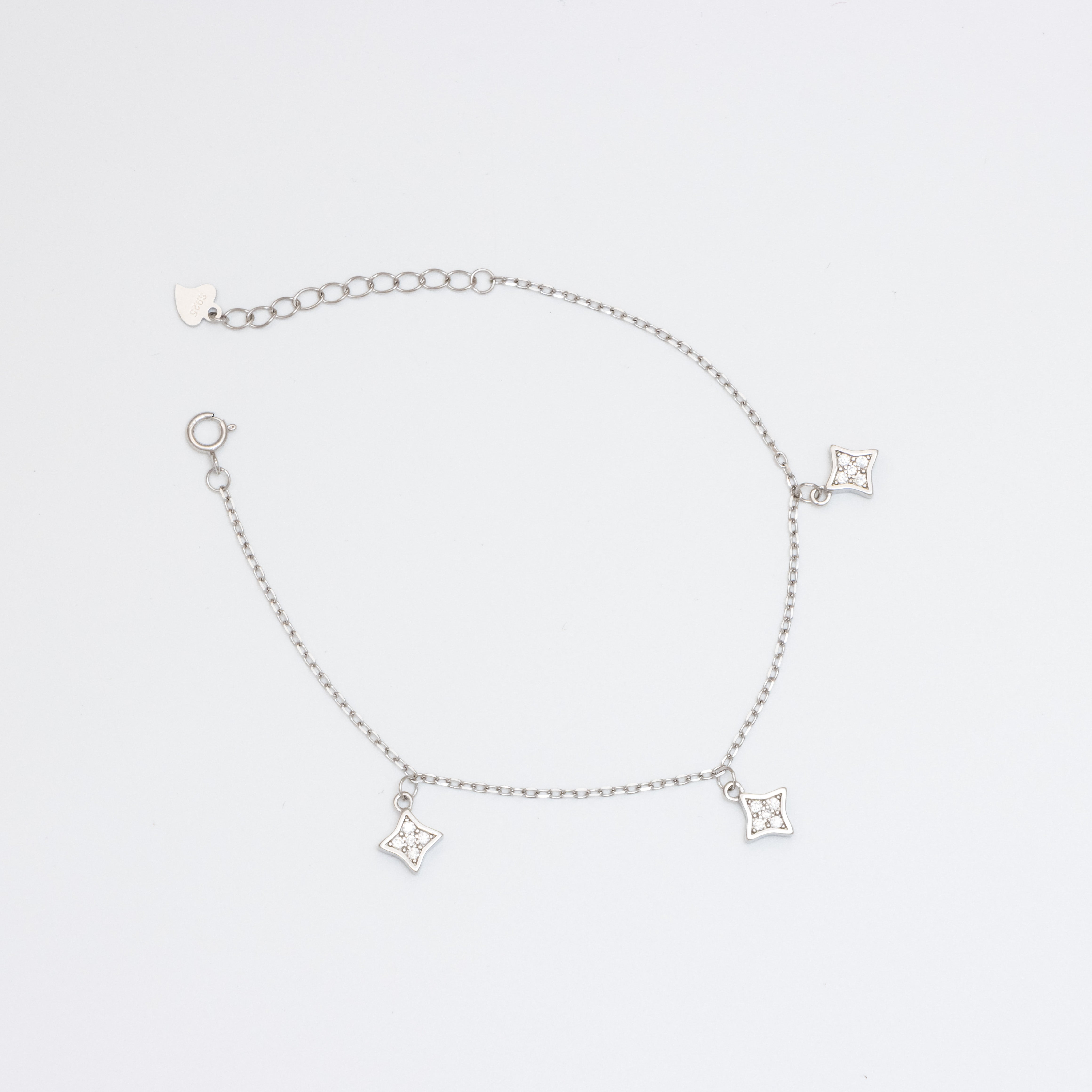 Indulge in the exquisite allure of our star chain bracelet, a stunning piece crafted from the finest 925 silver, renowned for its lustrous sheen and enduring quality. This enchanting bracelet features a delicate chain adorned with an array of charming motifs, each charm meticulously designed to evoke a sense of whimsy and elegance. The star charms glimmer like celestial bodies, adding a touch of cosmic beauty to your wrist, while the overall design exudes sophistication and grace. Perfect for both casual outings and formal occasions, this bracelet is not just an accessory; it is a statement of style and individuality, inviting admiration and sparking conversations wherever you go. Elevate your jewelry collection with this timeless treasure that seamlessly blends luxury with playful charm, making it an ideal gift for yourself or a loved one.