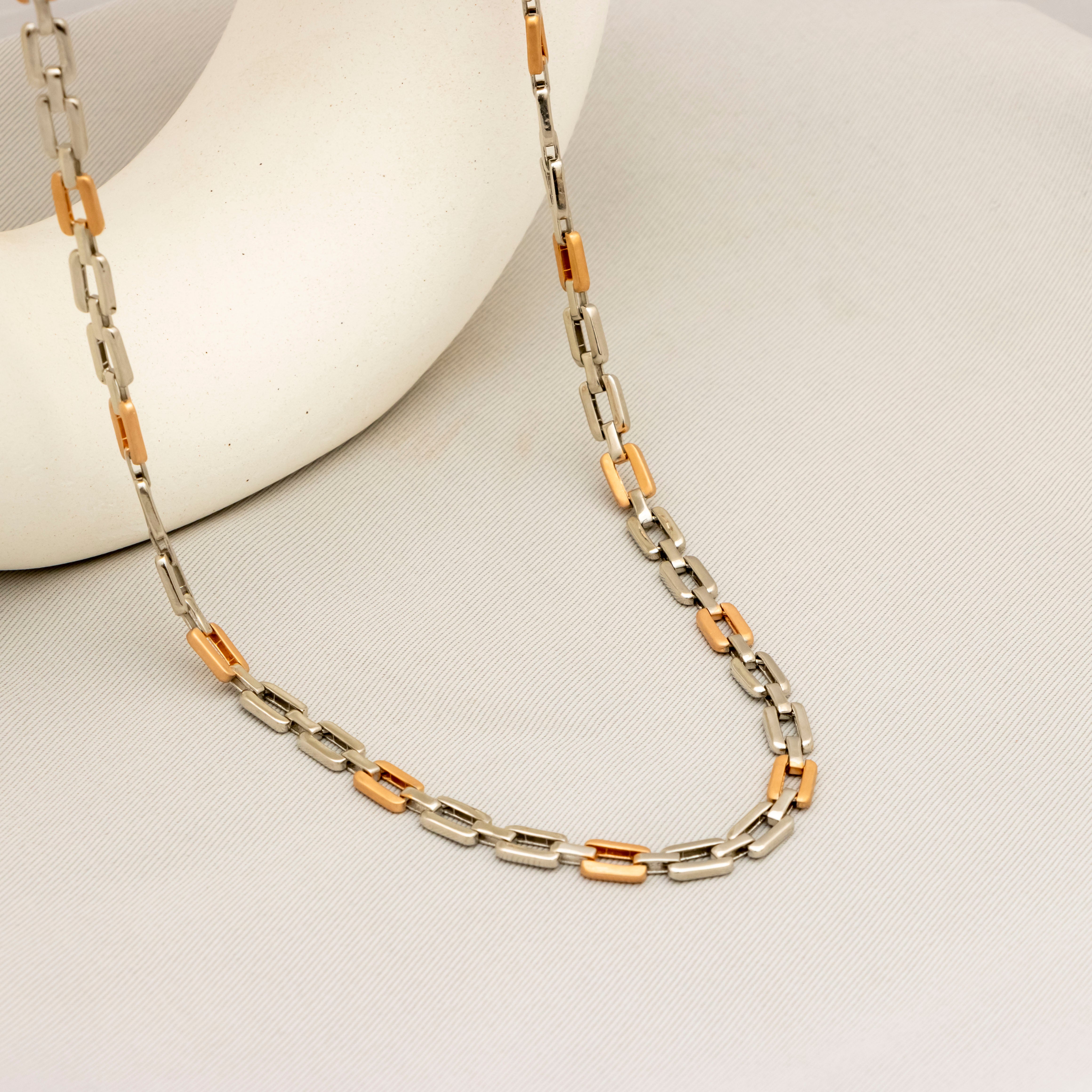 This exquisite necklace features a sophisticated design that seamlessly blends two-tone gold and silver links, creating a striking visual appeal that is both modern and timeless. Crafted from high-quality 925 silver, this men's chain is not only durable but also hypoallergenic, ensuring comfort for everyday wear. The alternating gold and silver links add a touch of elegance, making it a versatile accessory that can complement both casual and formal attire. With its polished finish and intricate craftsmanship, this necklace serves as a statement piece that reflects individuality and style, making it an ideal gift for the discerning gentleman who appreciates fine jewelry.