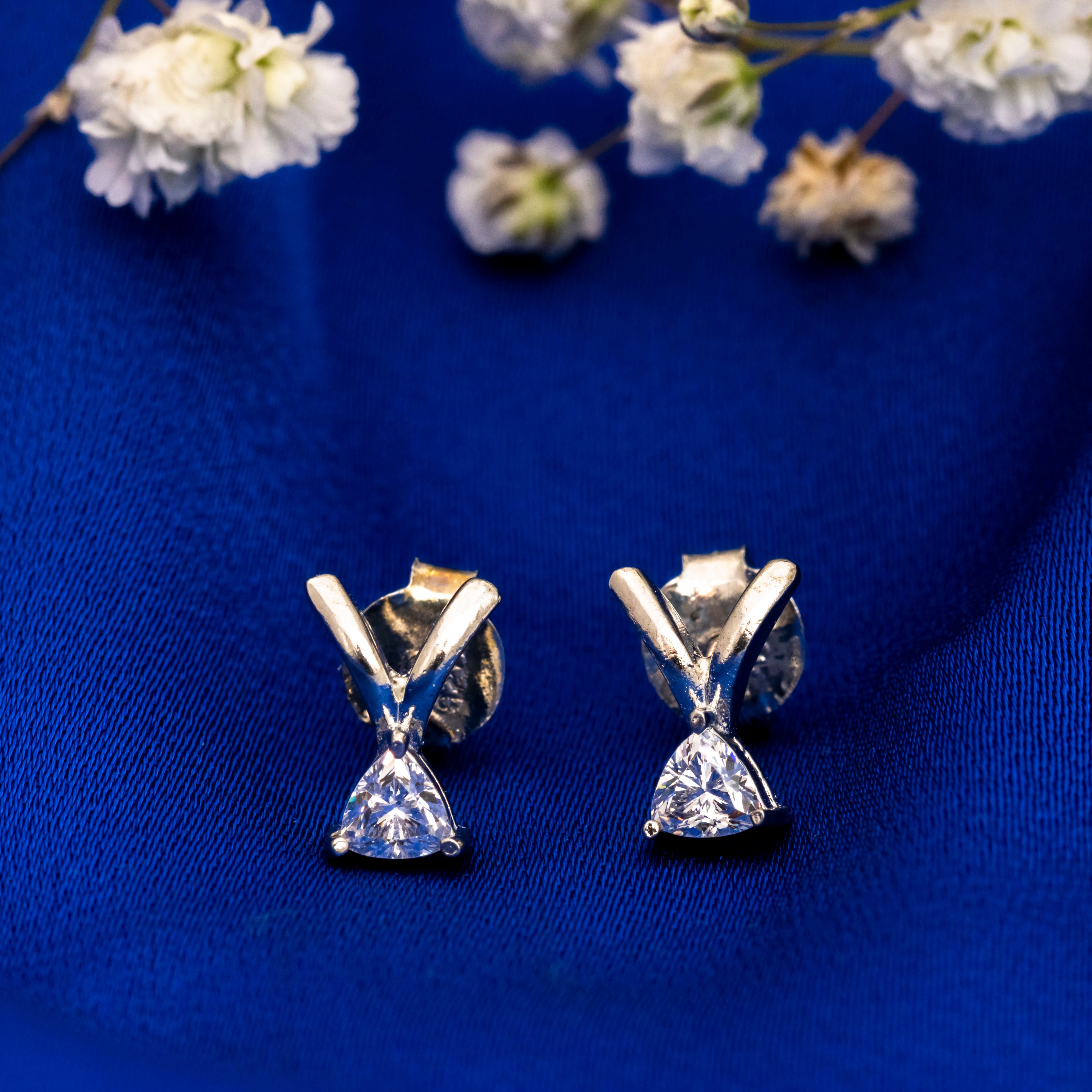 Indulge in the exquisite elegance of these triangle-shaped diamond stud earrings, a stunning addition to any jewelry collection. Crafted from high-quality 925 silver, these earrings boast a lustrous finish that enhances their sophisticated allure. Each earring is meticulously adorned with sparkling zirconia stones, which catch the light beautifully, creating a dazzling effect that is sure to turn heads. The unique triangular design adds a contemporary twist to a classic style, making them perfect for both everyday wear and special occasions. Elevate your ensemble with these luxurious earrings, where timeless beauty meets modern artistry, ensuring you shine with confidence and grace.